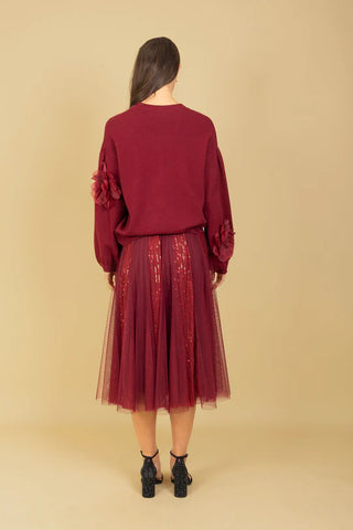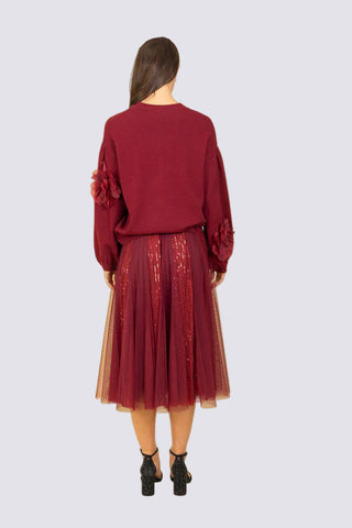 100% Merino Wool Round Neck Sweater with 3-D Floral Appliqué