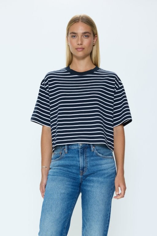 MAE CROPPED TEE IN NAVY WHITE STRIPE