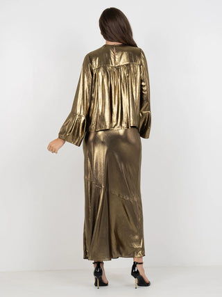 2pc Crop Chiffon Blouse with Jewel Buttons and Jersey Tank