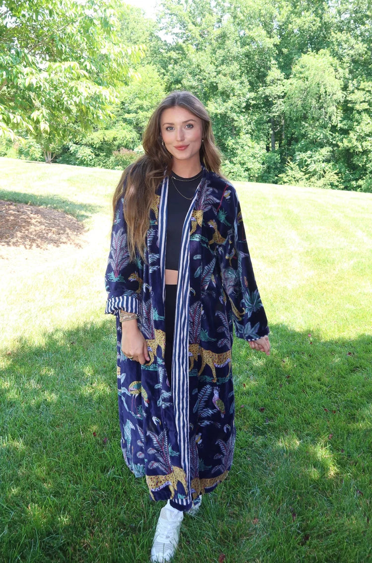 Meet the oversized velvet duster you’ll wear with everything — and we mean everything. With deep pockets and an effortlessly draped silhouette, it’s made for layering over a slinky silk dress, pairing with your go-to vintage denim, tossing on after Pilates, or wearing solo when you’re feeling bold (yes, nakey counts).