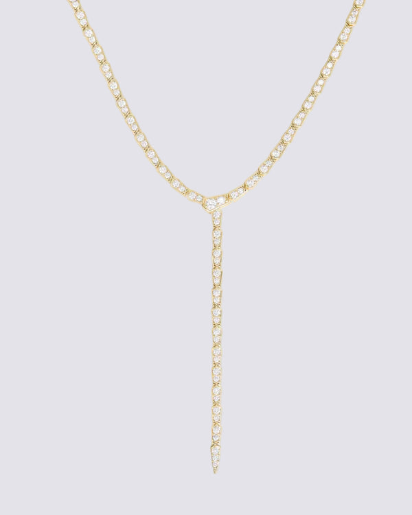 Sleek, striking, and dangerously good. With it's snake-like links and dazzling pavé finish the Pavé Serpent Lariat Necklace is just a little dangerous. Whether you're going low-cut or low-key, it bites… in a good way.