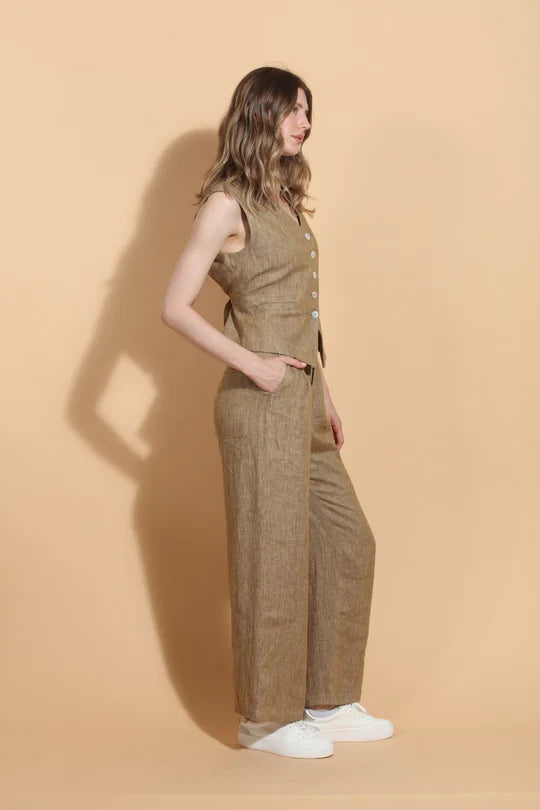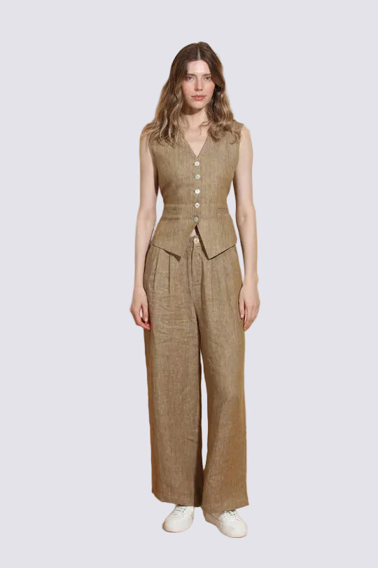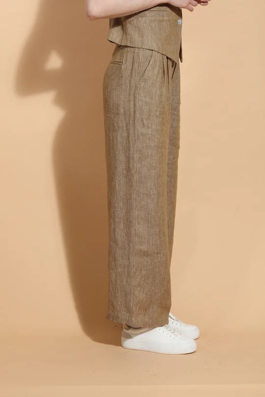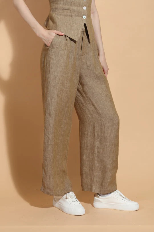 Ecru Linen Twill Wide Leg Pants