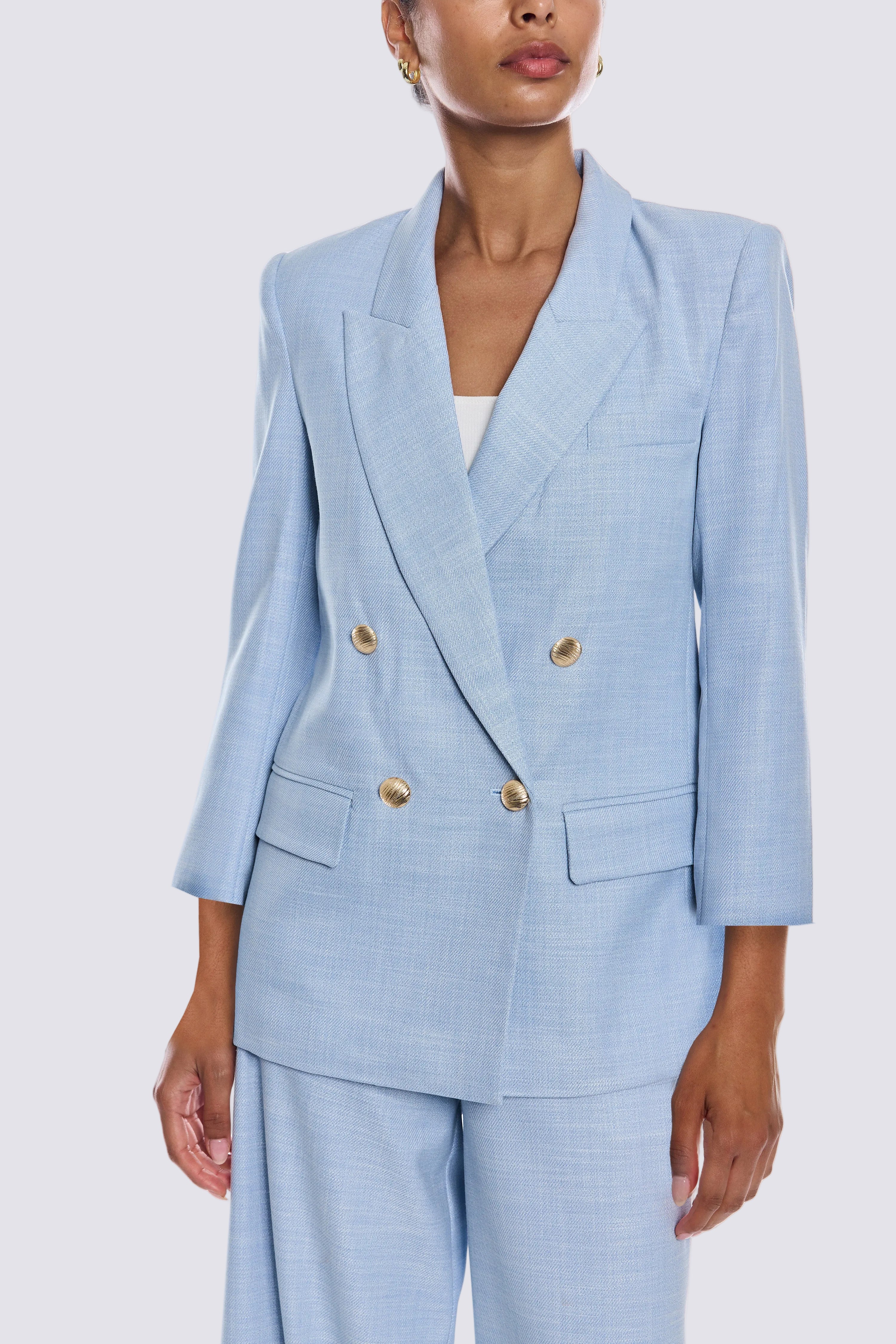STRETCH CHAMBRAY SUITING FIT DOUBLE BREASTED BLAZER W/ 3/4 SLEEVE