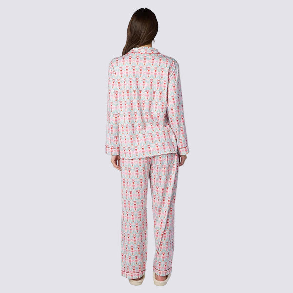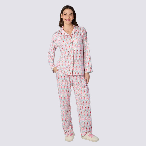 Indulge in festive charm with our Nutcracker Party Print Cotton Pajamas. Made from premium jersey fabric these pajamas are adorned with a whimsical nutcracker print that exudes holiday cheer. Whether you're sipping cocoa by the fire or enjoying a lazy morning, these pajamas will keep you cozy and stylish. Packaged in a charming gift bag, they also make the perfect present for loved ones.
